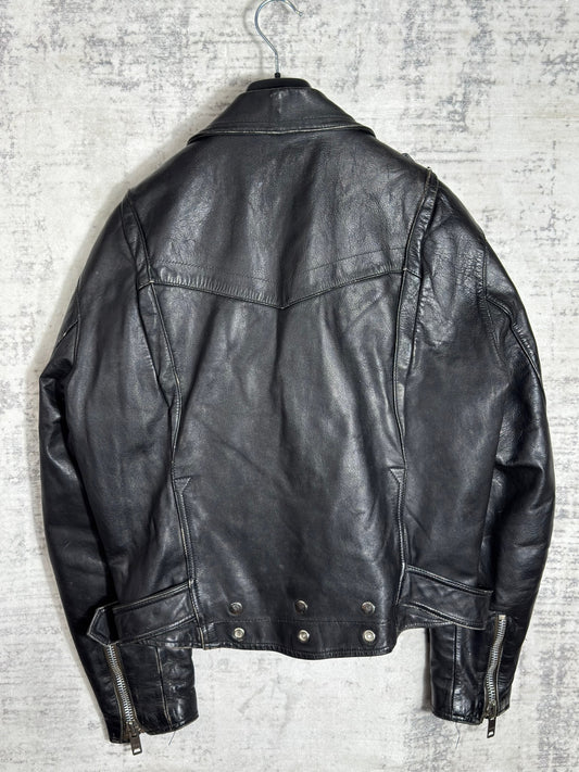 VINTAGE 80s CUT BACK MOTORCYCLE BIKER LEATHER JACKET SZ: S