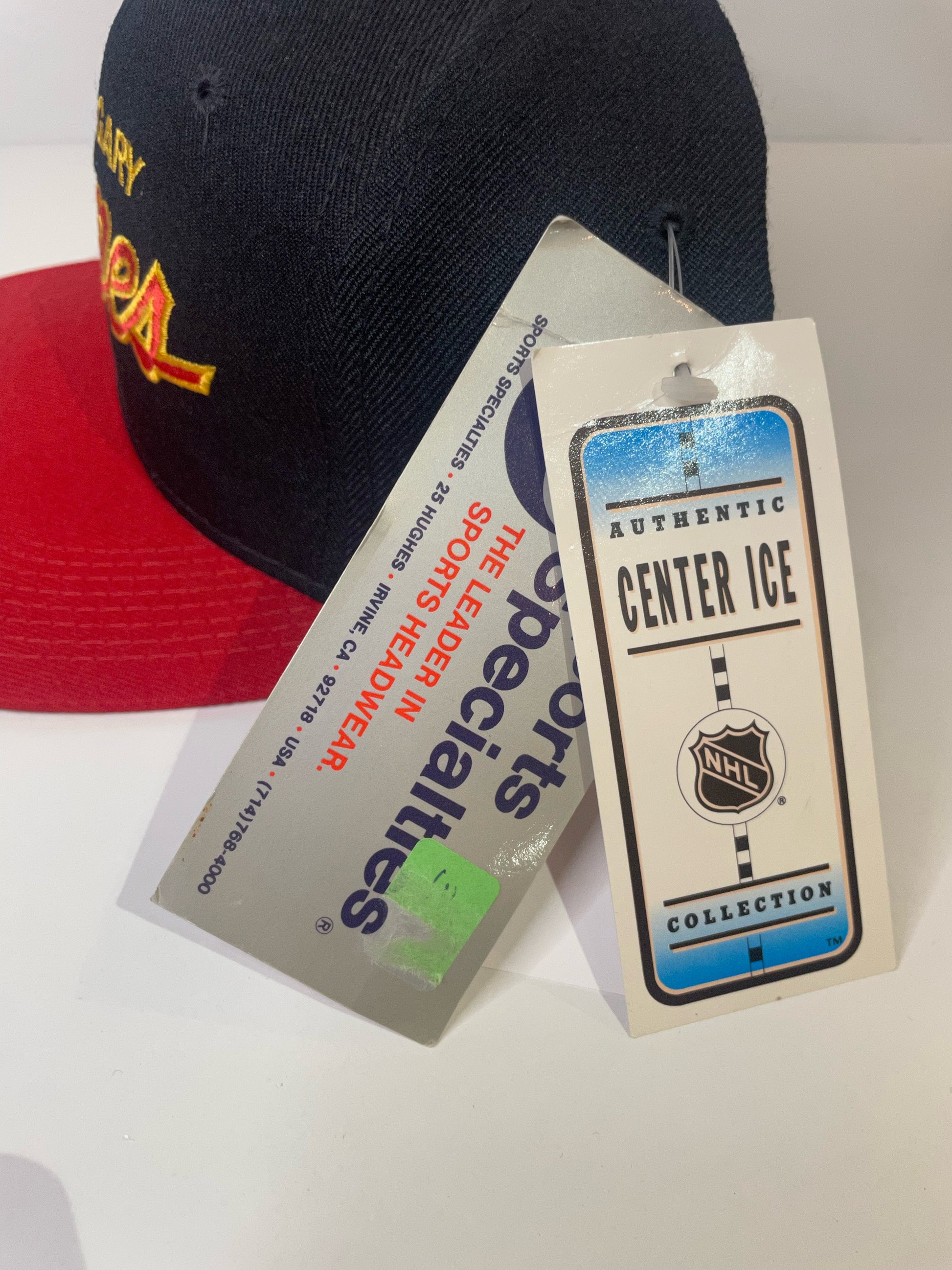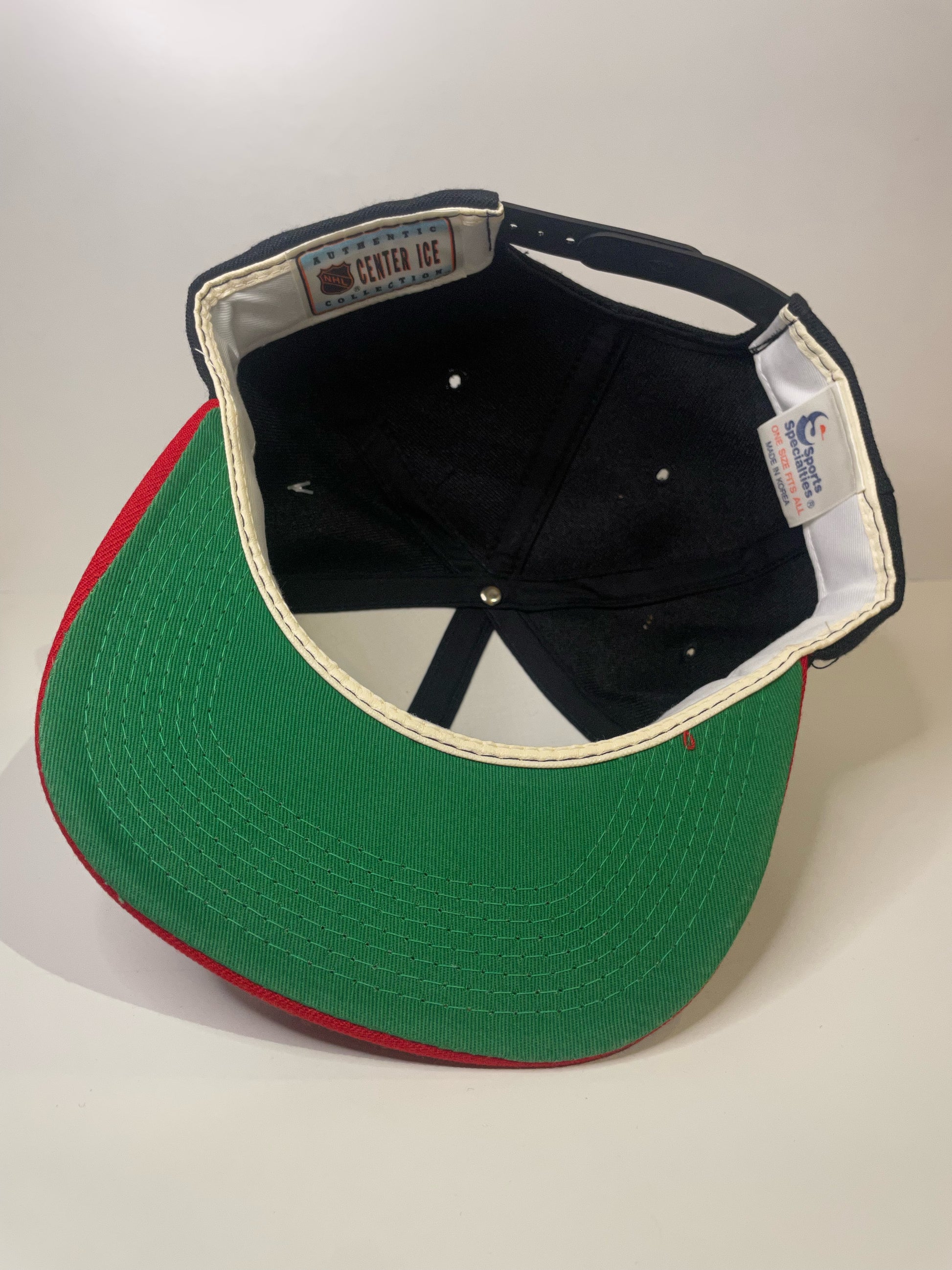 "DS" VINTAGE 90s CALGARY FLAMES SPORTS SPECIALTIES SCRIPT SNAPBACK HAT