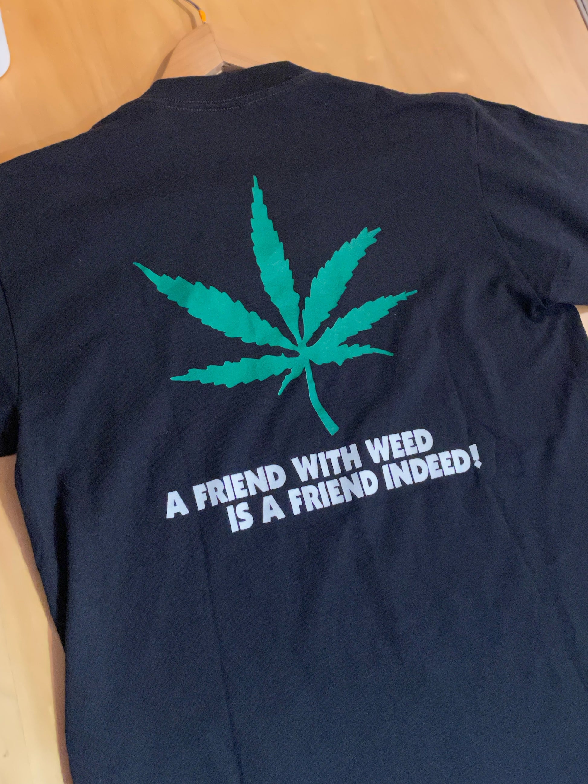 VINTAGE 90s CANNABIS LEAVE "A FRIEND WITH WEED IS A FRIEND INDEED!" T-SHIRT SZ: M