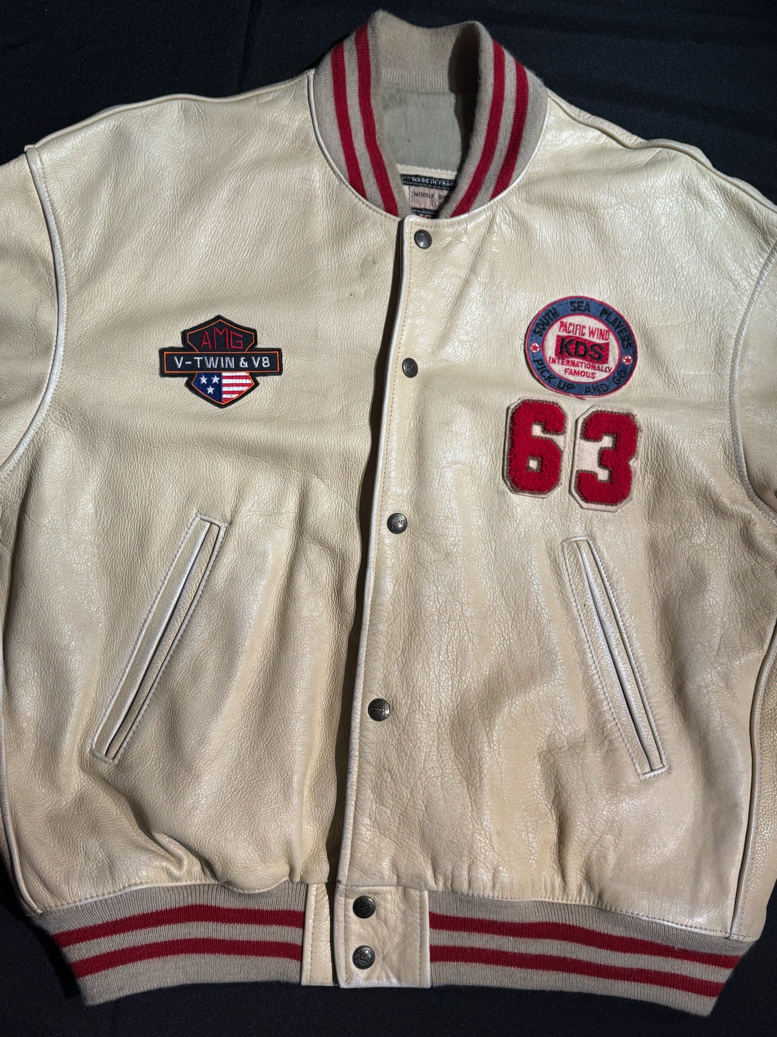 VINTAGE 90s KUDSAK VARSITY LEATHER JACKET SZ: L