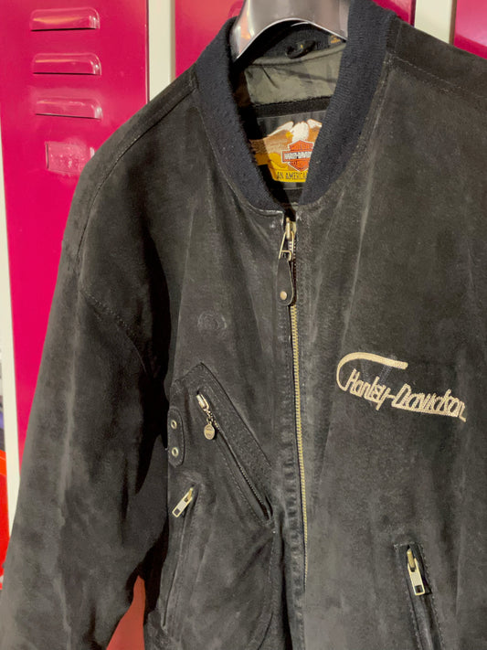 HARLEY DAVIDSON SUEDE LEATHER BOMBER JACKET SZ: L