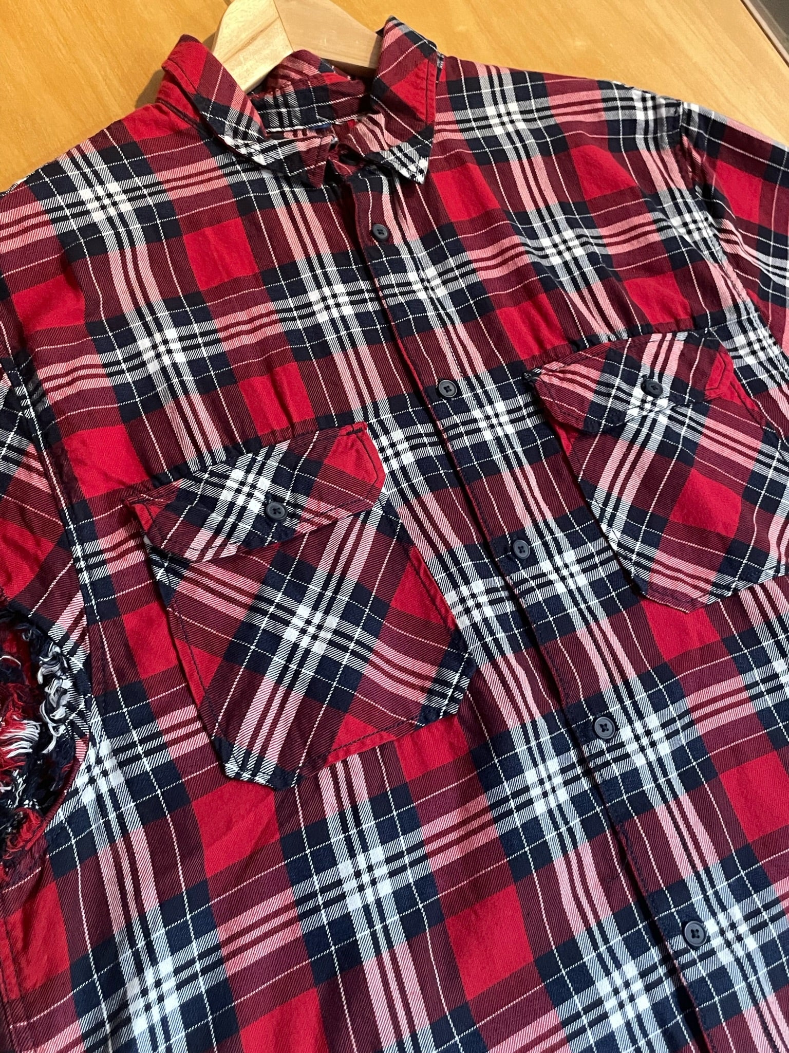 RETRO CHECKED CUT OFF SLEEVES SHIRT SZ: L