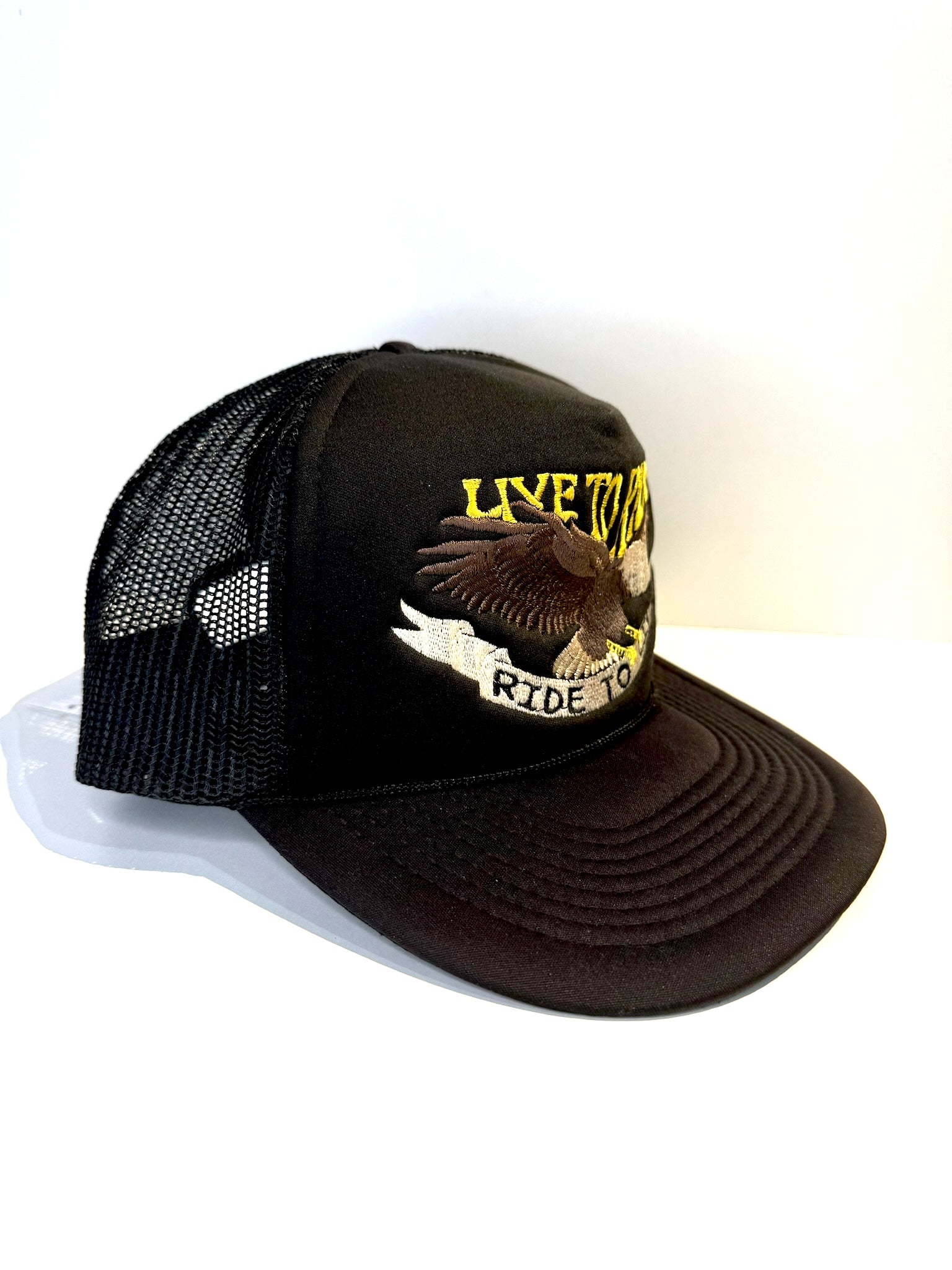 VINTAGE 80s HARLEY DAVIDSON LIVE TO RIDE" MOTORCYCLE TRUCKER SNAPBACK CAP HAT