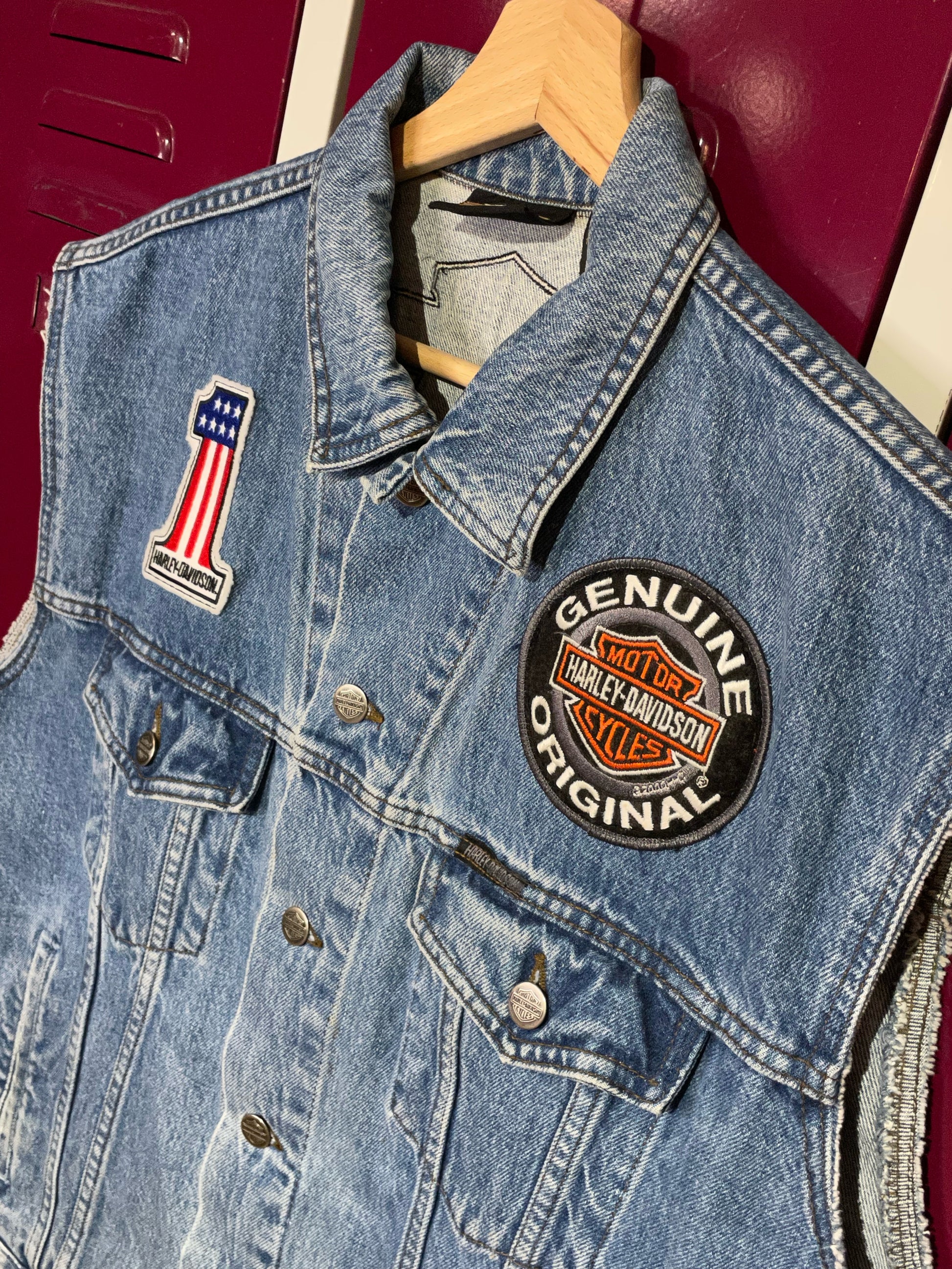 HARLEY DAVIDSON PATCHES TRUCKER DENIM VEST SZ: M
