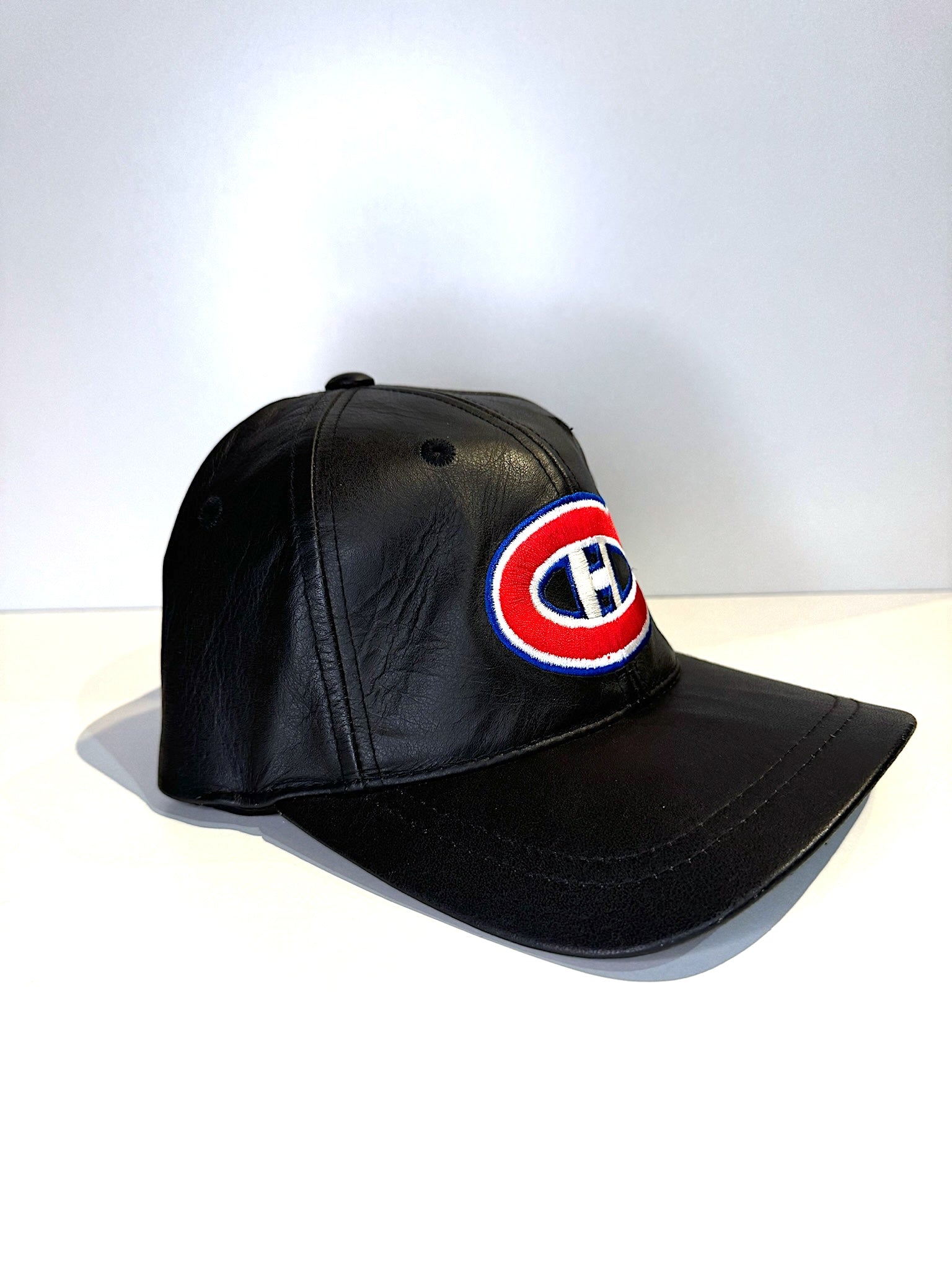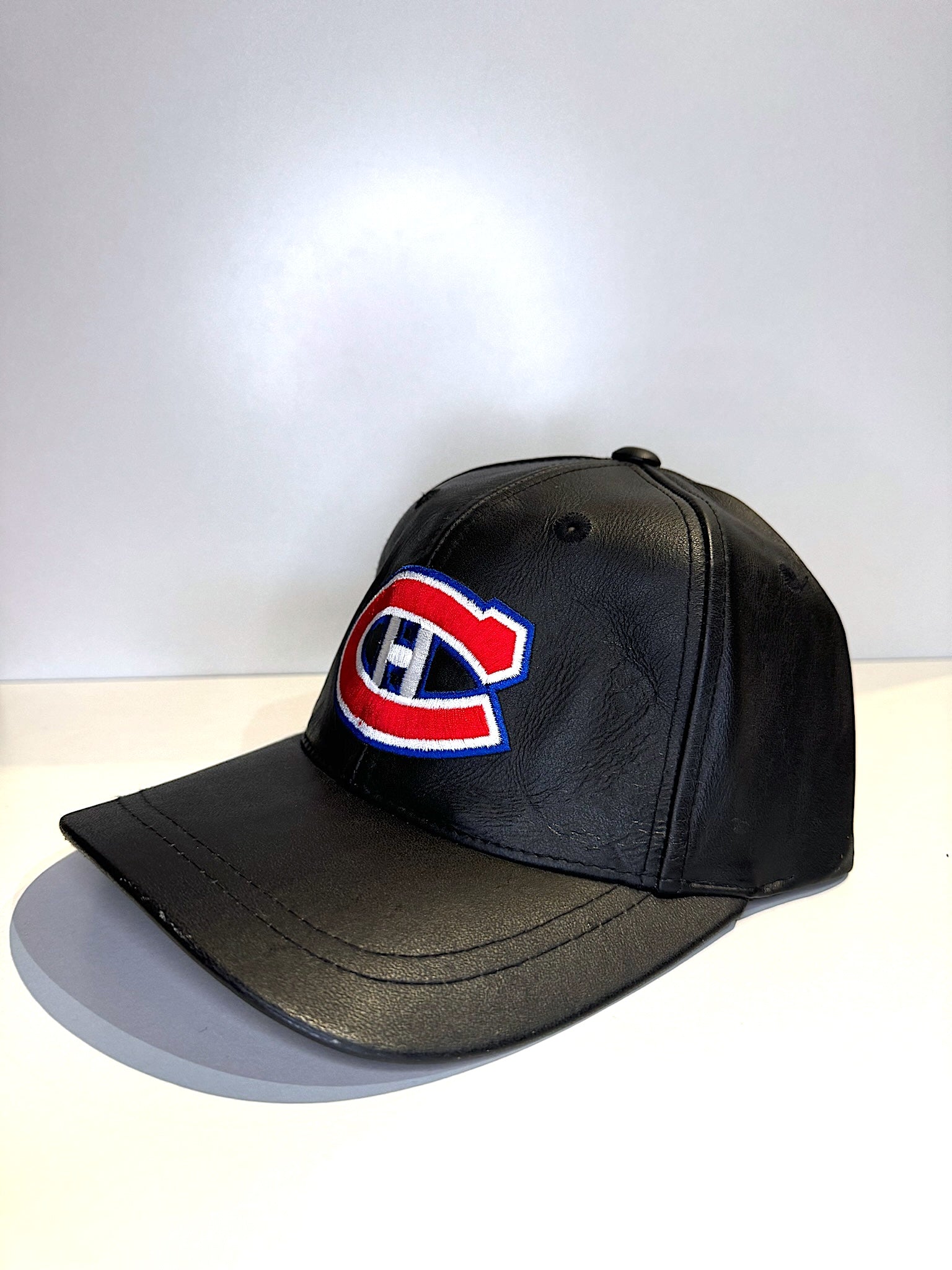 VINTAGE 90s MONTREAL CANADIENS AMERICAN NEEDLE LEATHER SCRATCHBACK CAP HAT