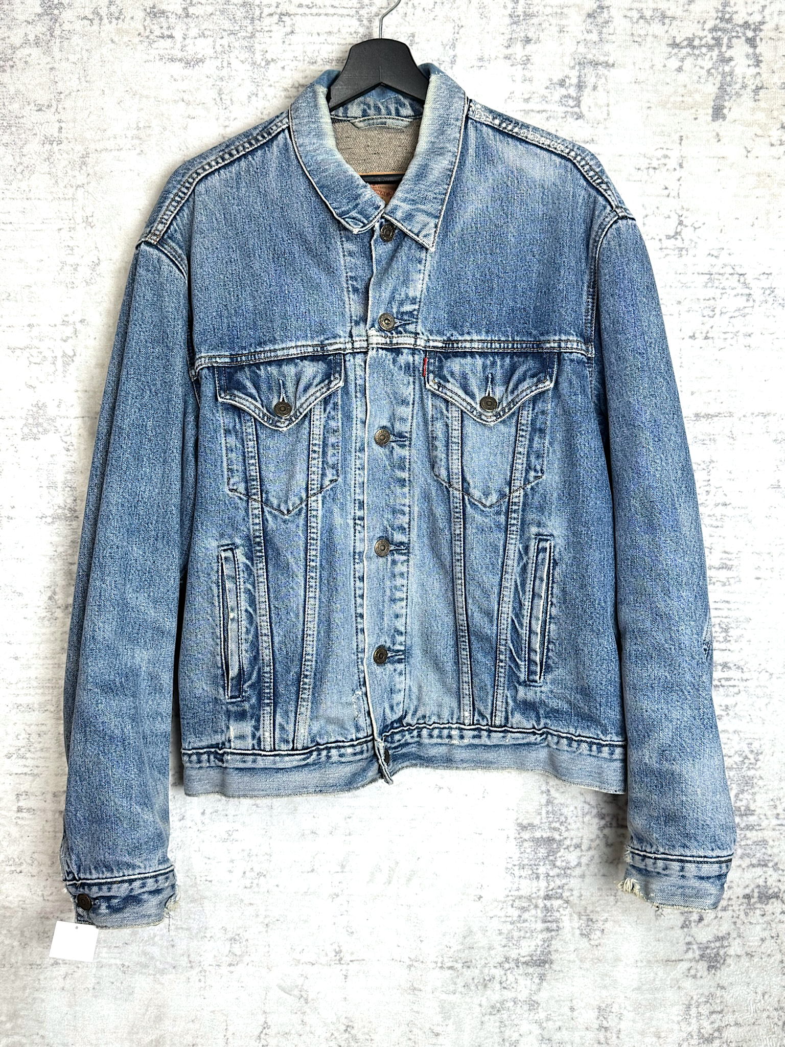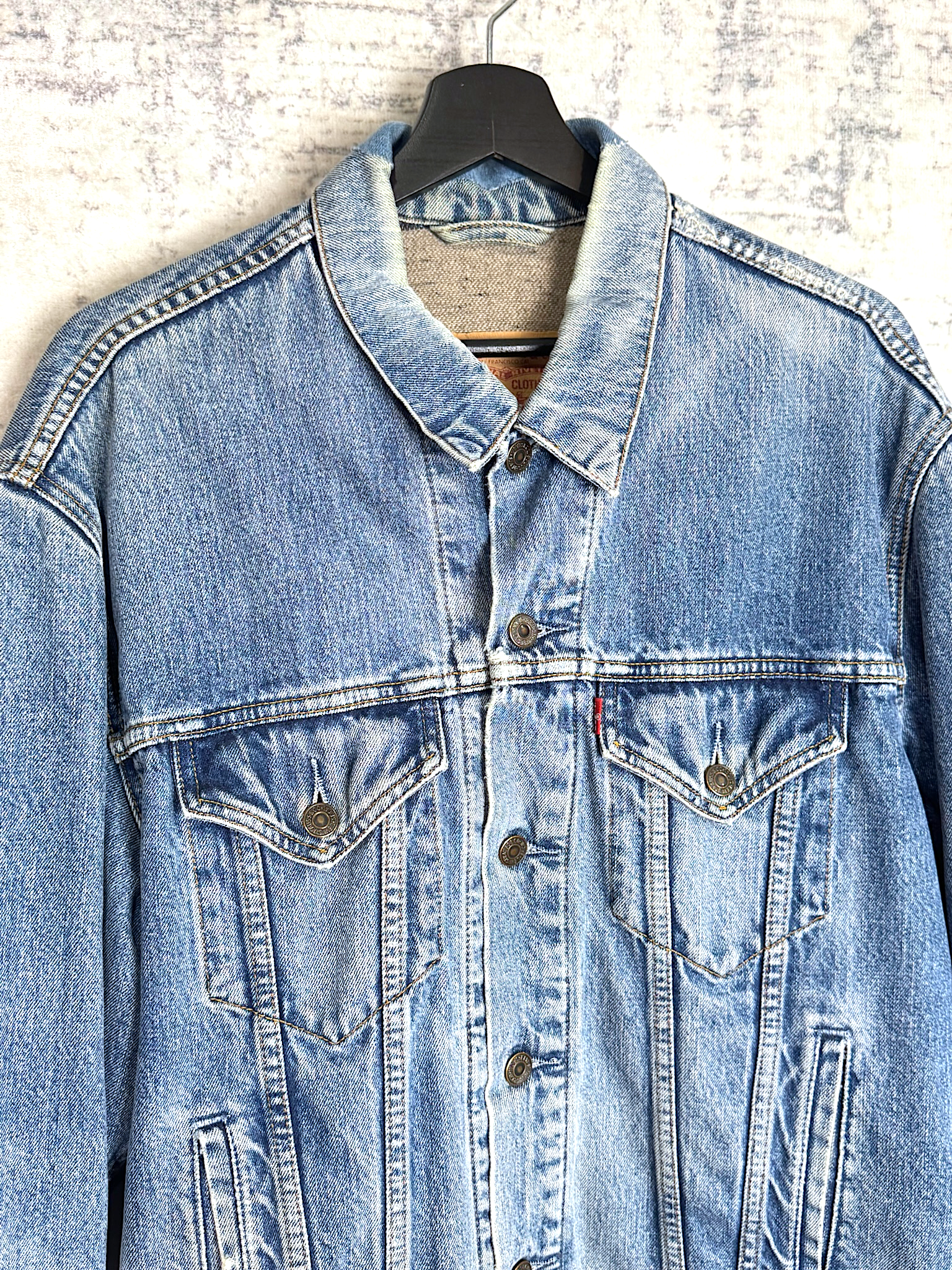 VINTAGE LEVI'S PLAID LINED "71550 04" DENIM JACKET SZ: XL