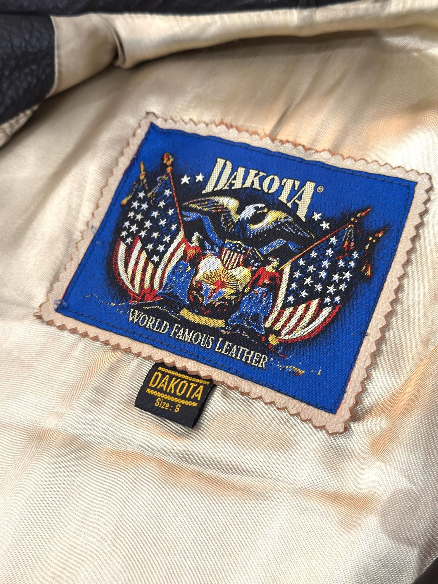 VINTAGE DAKOTA "AMERICAN SPIRIT" LEATHER VARSITY JACKET SZ: S