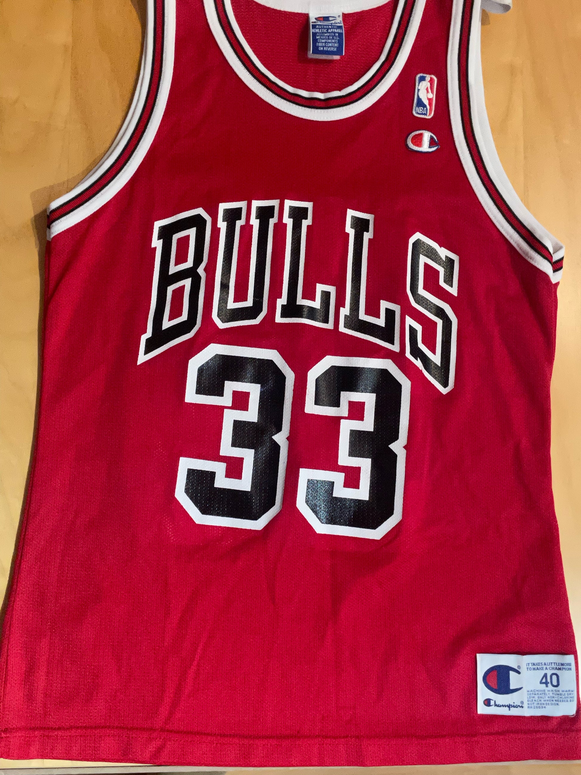VINTAGE 90s CHAMPION CHICAGO BULLS "PIPPEN" NBA JERSEY SZ: 40 = M