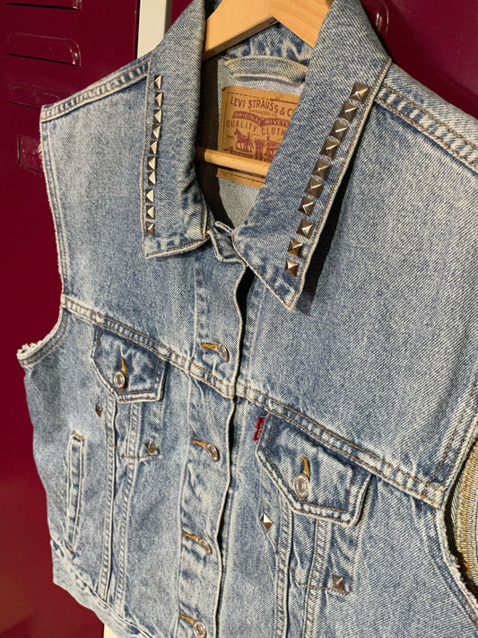 WOMEN LEVI'S VINTAGE NAIL TRUCKER DENIM VEST SZ: M