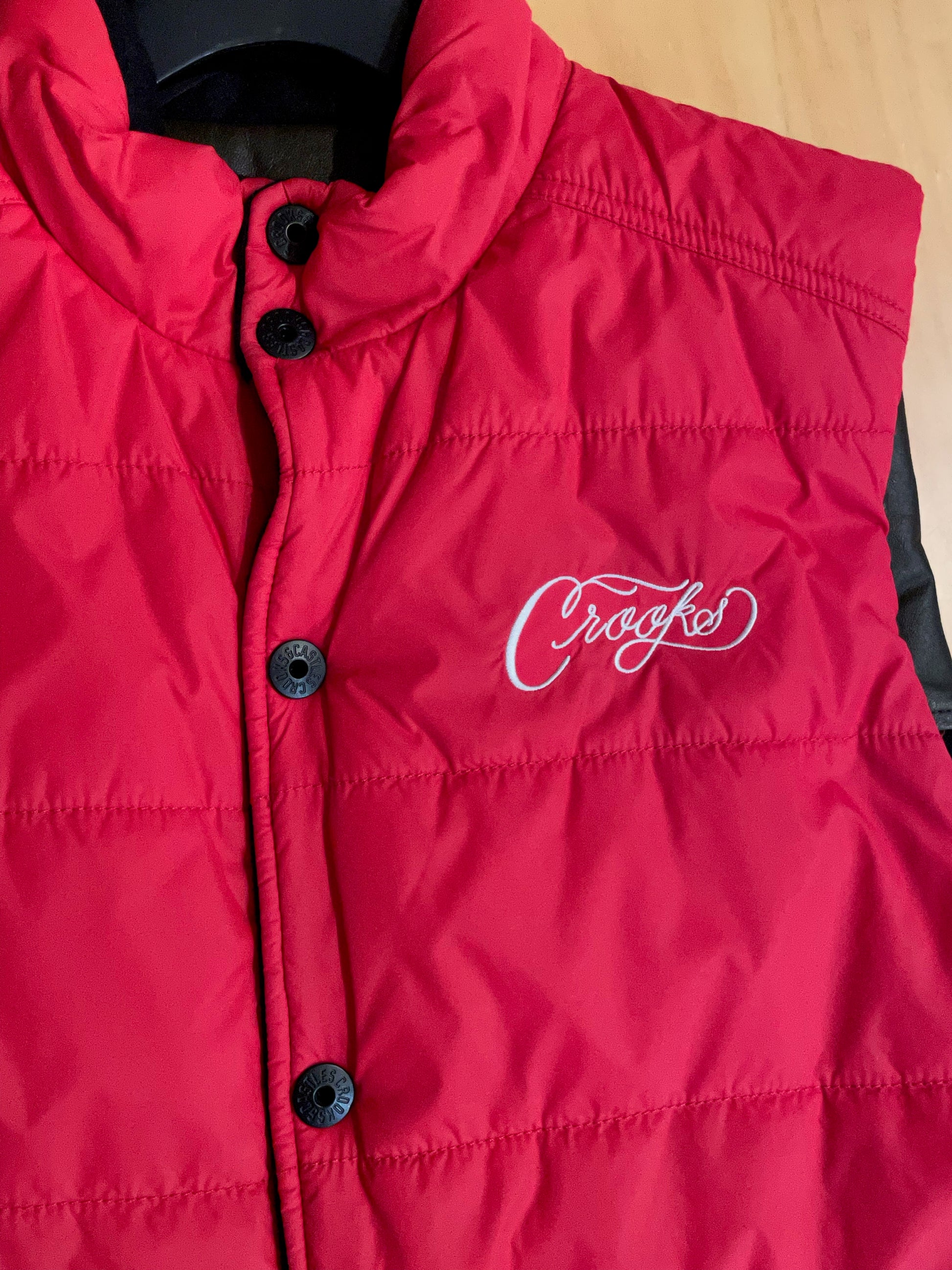 CROOKS & CASTLE REVERSIBLE BUTTON PUFFER VEST SZ: M