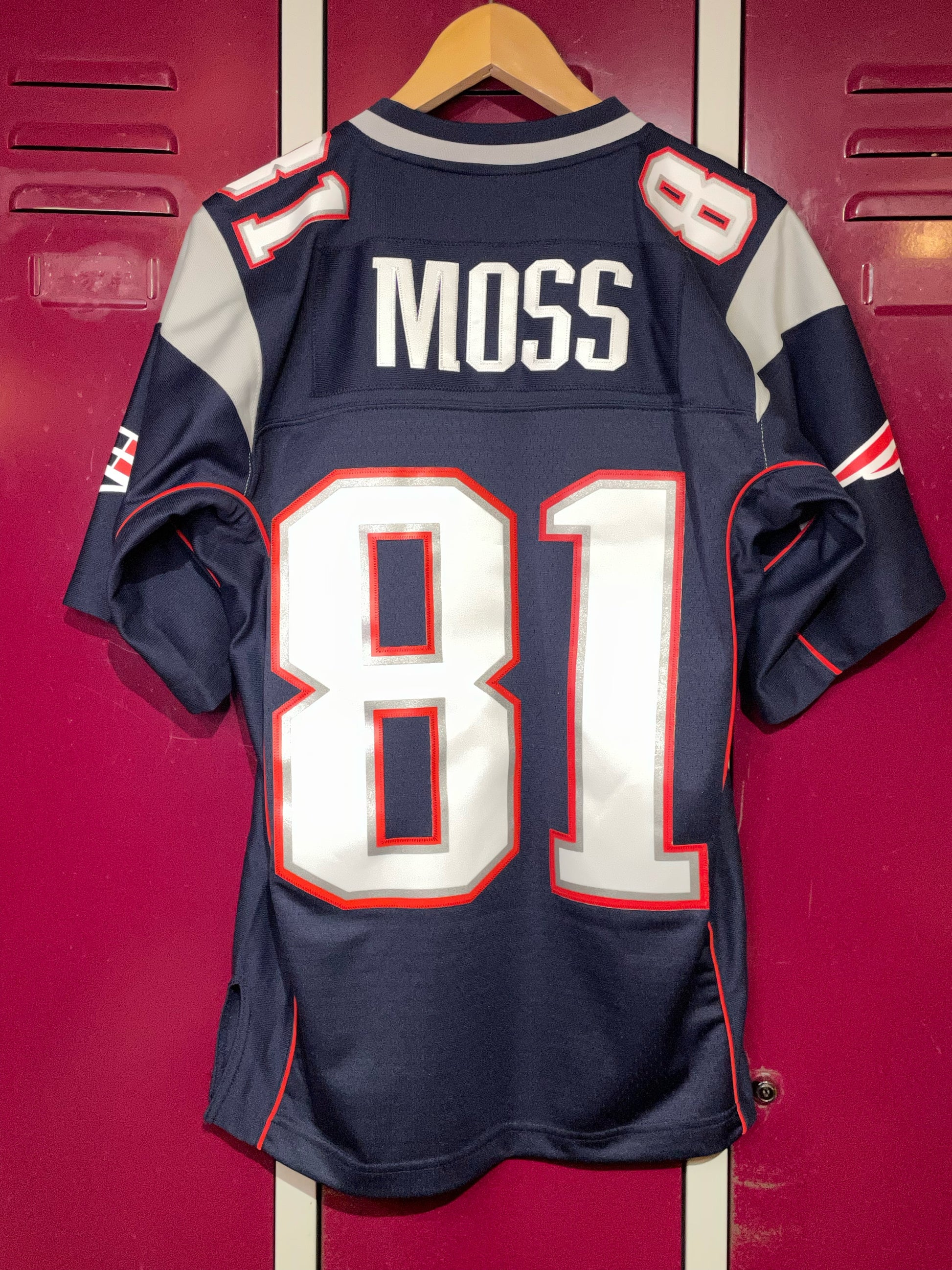 MITCHEL & NESS NEW ENGLAND PATRIOTS "RANDY MOSS" NFL FOOTBALL JERSEY SZ: 36/S